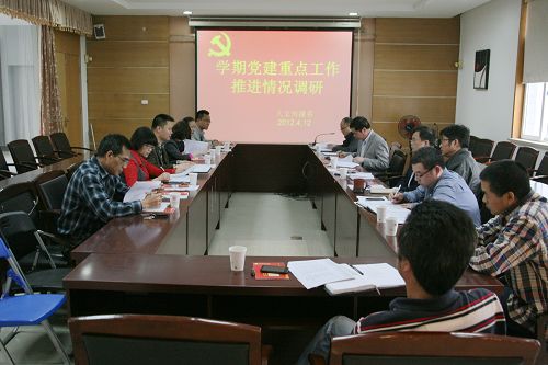 调研活动期间,陈光天书记等有关人员听取各系大学生思政建设、思想文化阵地建设、基层党组织和党员队伍建设、廉政建设、校园和谐安全建设等本学期党建重点工作任务落实情况以及党建创新学习项目建设方案的汇报,学院有关领导和党务部门负责人对各系党建工作进行了点评,既肯定了各系党总支党建工作成绩和特色,同时提出下一步需加强的工作要求。陈书记在调研中指出,各系党总支要紧紧围绕学院2012年党建工作要求逐项落实各项重点工作任务,要创造性开展工作,形成特色和亮点;党建工作计划安排要更加详细、周密,更加具有可操作性;党建工作责任分工要更加明确,系党政领导班子要形成抓党建工作合力;党建创新实践项目要不断完善、深化,形成长效机制,打造党建工作品牌;党建创新学习项目要融会贯通、有所创新,要青出于蓝而胜于蓝。倪集崇副书记就加强大学生素质教育、学习型党组织建设、和谐系部建设、党建带工建、团建、妇建等工作提出了要求。何忠书记就深化廉政风险排查、推进规章制度建设、完善信息公开、开展审计“回头看”、加强廉政风险教育等工作提出了要求。