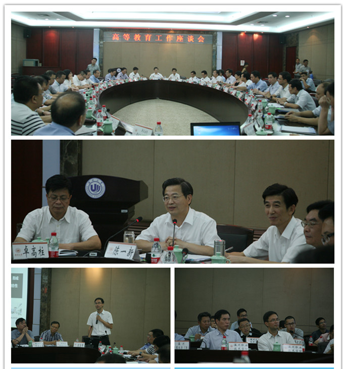 参观结束后,陈一新书记一行市领导在温州大学南校区岩松堂雁山厅举行高等教育工作座谈会。座谈会上,丁金昌院长向陈书记汇报了学院近年来的发展情况、专业设置、师资建设、校企合作等方面取得的骄人成绩,并表示学院下一步的目标和信心——以国家高职教育综合改革示范区为平台,进一步推进办学体制机制创新;进一步推进特色发展、开放发展、创新发展,旨在保持学院在全国高职院校中的领先地位,为温州经济社会发展,为高职教育可持续发展做出更大贡献。会上,温州医学院和温州大学等九所高校领导也分别做了工作汇报。