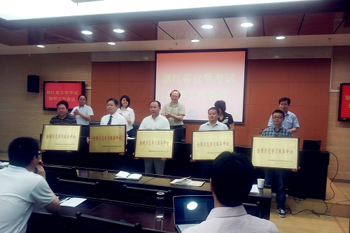 我院成教学院副院长欧阳翰夫,自考部主任朱建敏代表我院参加了授牌仪式。此次我院喜获高等教育自学考试“全国示范学习服务中心”荣誉称号,不仅是我院成为全国首批获此称号的助学组织之一,也是我院在自考教育中获得的国字号荣誉。