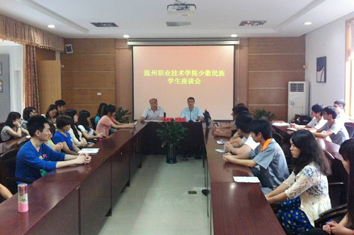 5月22日下午,我院在知行楼一楼会议室召开少数民族学生座谈会。温州市少数民族联谊会会长、学院党委委员、副院长兰玉景,学工部部长、学生处处长叶吉波出席会议,各系辅导员代表、少数民族贫困学生代表30多人参加座谈。会议由学生处处长叶吉波主持。