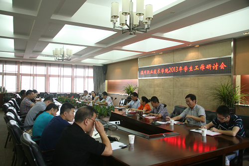 8月30日,以“基于‘三个课堂’的学生工作创新与实践”为主题的我院2013年暑期学生工作研讨会在院正德楼罗山厅举行。院党委书记陈光天、院长丁金昌、副院长王向红,学生工作委员会全体成员、各系(成教学院)党总支书记、学生处(团委)全体成员、全体学工办主任和思政辅导员参加了研讨会,会议由学生处副处长吴冰主持。