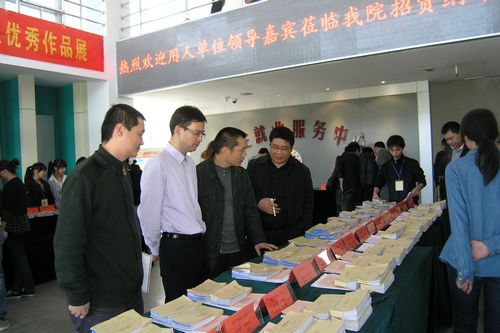 3月28日,由财会系就业管理服务中心举办的“财会系2012届毕业生春季专场招聘会暨优秀作品展”在行政楼招聘大厅成功举行。本次招聘会得到了温州市各企业以及学院相关部门的大力支持,共有四十家企业参加了此次招聘会,为应届毕业生提供岗位550多个。同时,为了让各单位更好地选择合适的人才,在招聘会期间还开展了2012届毕业生优秀作品展,现场展示了财会系应届毕业生实训的优秀成果,作品包括银行日记账、记账凭证、模拟银行等。院党委书记陈光天、院长丁金昌、副院长夏晓军亲临招聘会现场指导工作。