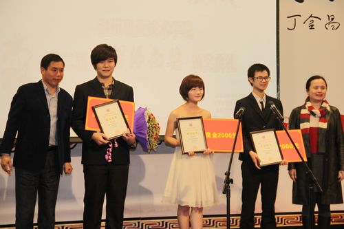 院党委书记陈光天为获奖学生颁发荣誉证书和奖金