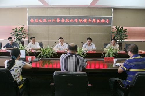 5月18日上午,四川警安职业学院副院长何义兴、宋代奇一行5人来访我院。学院兰玉景副院长热情接待了来访的客人。在实地参观了我院的实训基地后,双方于301会议室展开座谈,就两校在服务地方经济、课程建设、校外实训基地建设等方面的办学经验进行了交流学习。