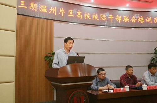 据悉,本期培训班为期三天半,共安排五次讲座、一次室外素质拓展训练、一次分组讨论。讲座内容分别涉及区域性高职院校发展路径、教学改革、教学管理、教学质量监控以及高校干部领导力提升等。在随后的培训中,邀请了温大副校长叶世祥教授、温医教务处处长曹建明教授、中国计量学院经济与管理学院院长易荣华教授、浙江工商大学杭州商学院副院长易开刚教授作专题讲座。来自温州医学院、温州大学、温州职业技术学院、浙江工贸职业技术学院、温州科技职业学院等5所高校的61名负责教学管理工作的中层干部参加了本次培训。