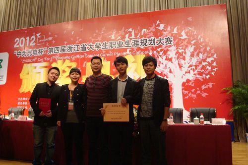 10月31日,浙江省第四届大学生职业生涯规划大赛决赛在中国计量学院落下帷幕。经过激烈角逐,我院计算机系周理栋同学喜获一等奖,并被授予“2012年最佳创业规划之星”称号;电气系文帅同学获二等奖,轻工系任国宝获三等奖,招生就业处谷智静、金建孟、郑晓丹三位老师荣获“优秀指导老师”称号。