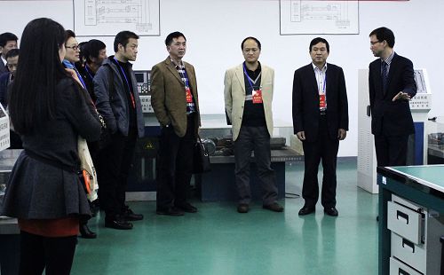 在院长丁金昌、党委副书记夏晓军陪同下,视察组一行参观了我院的校内实训基地,并对我院的基地建设赞赏不已。丁金昌院长从以下三个方面向视察组一行汇报了我院的办学特色:一、对接区域产业,产学合作办专业;二、培养特色人才,引领职业教育发展;三、开展立地式研发,促进区域产业转型。视察组对我院的办学成绩给予充分肯定。