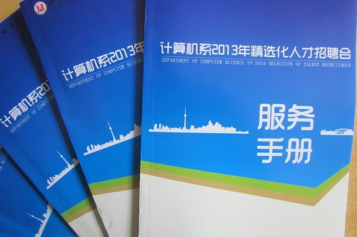 三是就业服务出新招:为了更好的服务于毕业生有针对性的参加精选化招聘会,努力提高现场签约成功率,计算机系制作了《计算机系2013年精选化人才招聘会服务手册》。手册内容包括毕业生参加招聘会前应做好哪些准备、毕业生参加招聘会注意事项、招聘单位简介、招聘岗位及福利待遇等。该手册在招聘会前一天已发到每位毕业生手上。很多毕业生前期对参会企业进行了了解,并对有意向的企业做了标注,提高应聘的针对性,受到了师生的一致好评。