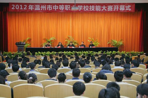 2月25日上午,由市教育局、市人力资源和社会保障局主办的2012年温州市中等职业学校师生技能大赛在我院隆重开幕。市教育局副局长戚德忠、市人力资源和社会保障局副局长董旭辉、学院副院长王向红,市教育局职教处处长薛昭、市人力资源和社会保障局培训处处长金凡出席了开幕式。