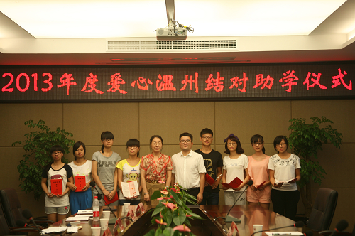 报告会后,我院于科技研发大楼召开座谈会,并举行2013年度爱心温州结队助学仪式,王向红副院长主持会议。