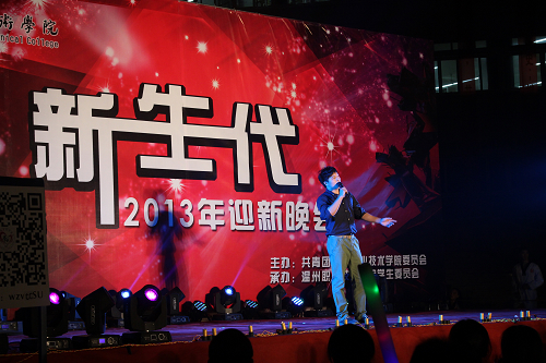 9月29日晚,由共青团温州职业技术学院委员会主办,院学生委员会承办的2013年迎新晚会在明德楼前隆重举行。学生处处长叶吉波、人文系主任田正、建工系党总支书记苏跃飞、财会系党总支书记谢肖力、院团委副书记刘海明及辅导员代表出席并观看了此次晚会。