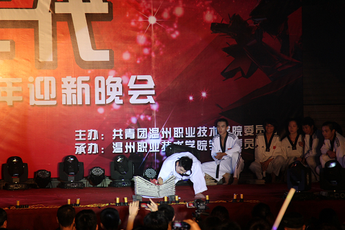 激情的AC乐队拉开了晚会序幕。心理情景剧《打开心门》为现场同学上了一堂特别的教育课;靓丽青春、优美动人的舞蹈《海那边》为大家带来别有韵味的现代大学生朝气蓬勃的面貌;俏皮灵动、深情意长的歌曲《趁早》等用歌声诉说着对来自五湖四海的同学的深情;小品《五个男人一台戏》幽默诙谐的语言更是引得全场捧腹;优美的诗朗诵、炫目夺彩的舞蹈、劲爆有力的跆拳道,昭示着大学生的年轻与活力,激情与梦想。晚会中的主持人与同学互动环节更是让同学们以主人翁的姿态融入到温职大家庭中,使新生们不仅感受到大学的氛围,更对校园文化有了新的感悟。最后,晚会在满载祝福的歌曲《我的未来不是梦》的歌声中,炫彩落幕。
