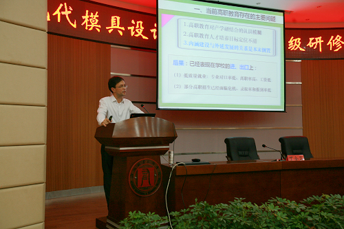 此次研修班为期六天,采取了专家授课、研讨、交流与企业实地考察相结合等方式进行,重在解决模具生产、模具教学中的实际问题,针对性强。期间,我院丁金昌院长还在百忙之中抽空为全体学员做了一场题为《加强专业内涵建设 培养高职不可替代性人才》的报告。他从当前高职院校存在的主要问题出发,结合我院专业内涵建设发展实际,阐述了高职院校应该树立起高职不可替代的发展理念,按照高教规律深化专业内涵建设。