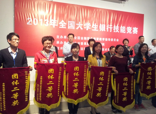 本次比赛由全国金融职业教育教学指导委员会主办,这是该指委会成立后举办的第一届比赛,也是目前国内最高级别的大学生银行技能竞赛,共吸引了来自全国84所高职院校的252名学生参加竞逐。竞赛分为综合业务技能和单项业务技能,经过激烈角逐,财会系学子一路过关斩将获得团体二等奖;金融1102魏碎玲获得点钞项目二等奖;金融1102潘翔翔获得传票算项目三等奖;金融1201陈乐强获得字符输入项目三等奖。