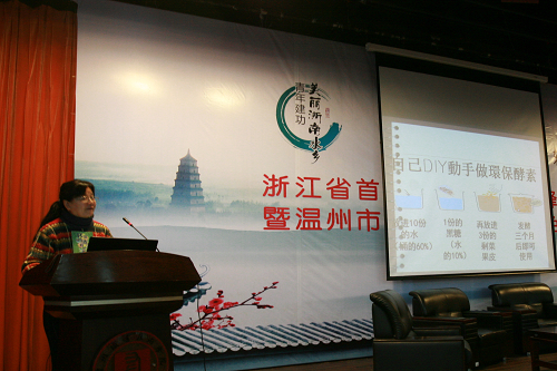 在致欢迎词中,王院长对全省志愿者为了“绿色发展”事业相聚温州职业技术学院表示热烈的欢迎,并简要介绍了学院的发展情况及志愿者活动的概况,阐明了一所高校在关注水环境、保护母亲河、助推产业转型中的责任。