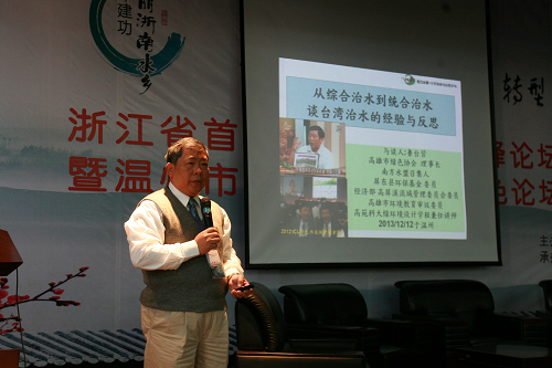 在论坛主旨发言环节,中央人民广播电台记者、2007年绿色中国年度人物汪永晨做了全球气候气候变化对中国江河的影响的演讲,全面分析了全球气候变化对中国江河的影响,并号召全体志愿者现在要保护水环境,保护身边的绿色家园。来自台湾高雄的绿色协会理事长以台湾治水为案例,将台湾地区的治水经验跟现场的志愿者进行了交流,为浙江的治水提供了宝贵的经验。浙江省水利勘测设计院的副总工程师黄昉则介绍了浙南水乡的规划,为打造建设美丽浙南水乡奠定了理论基础。