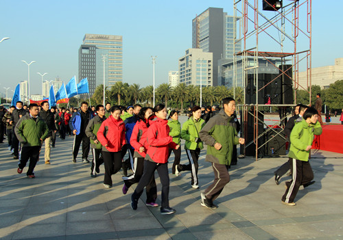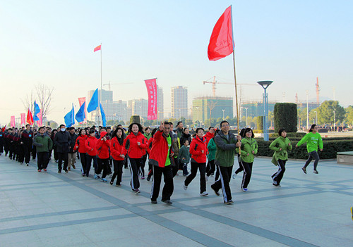 一年一度的元旦健身跑是我市迎接新年的一个传统体育活动,自1982年开始至今已举办了31届。参加成员有市直属机关单位,企事业单位,大中院校等。人文传播系已经连续第六次参加健身跑活动,成为元旦健身跑的忠实“粉丝”。