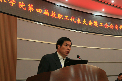 随后,学院党委副书记、工会主席夏晓军汇报工会工作报告。夏书记对学院过去五年工会工作总体情况进行了回顾和总结,并布置学院第四届工会工作的主要任务:围绕学院中心工作,团结动员广大教职工为学院的改革与发展作出新工作;切实维护和发展教职工利益;把群众路线作为工会工作的生命线;加强工会自身建设,强化责任意识,不断提高工会工作的整体水平。