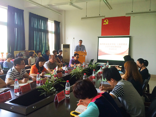 启动仪式上,李建中书记致欢迎词,他首先感谢学院领导、各部门、各企业对工商系大学生创业教育园的大力支持和帮助,他指出大学生创业园的成立是工商系对加强大学生创业实践教育,结合专业建设,加强校企合作精神的贯彻落实,希望学生能够依托这一平台,加强学习与实践,自觉遵守企业和创业班的规章要求,学有所得,提高职业素养。之后,企业代表、教师代表、学生代表相继发言。