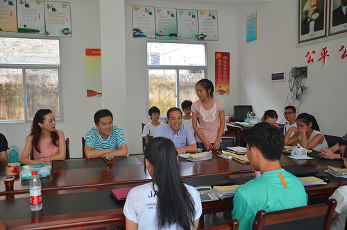 作为财会系2014年暑期社会实践最具特色的队伍之一,枫林暑期社会实践队一直受到学院和地方政府领导的重视。7月17日下午,学院党委委员、副院长王向红教授、学生处副处长吴冰、财会系党总支书记谢肖力和学工办主任马德龙一行到永嘉县枫林镇看望实践队学生。枫林镇镇长林杰、副书记金文达、王渊、县委办政策研究室副主任胡文显在此时也亲切慰问了实践学生,院地领导在枫林镇孤山社区服务中心会议室里开展了座谈会。