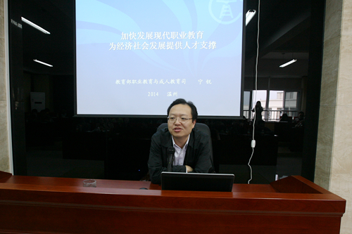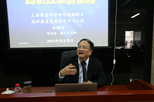 为了贯彻全国职教大会精神,落实国务院《关于加快发展现代职业教育的决定》要求,深入推进学院内涵建设,10月30日学院特邀请教育部专家、高等职业教育发展研究中心主任马树超研究员来我院做主题为《高等职业教育改革与发展》的专题讲座。11月12日学院特邀教育部职业教育与成人教育司副处长宁锐来我院做主题为《加快发展现代职业教育为经济社会发展提供人才支撑》的专题讲座。
