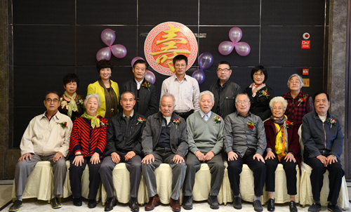今年,我院70岁以上逢五、逢十的以及90岁以上的离退休老同志共有20位,其中年龄最大的是一分会的李庆和老师93岁。因为老同志身体不适或在外地等原因,参加集体祝寿活动的共有14位老寿星。学院党委副书记夏晓军代表学院向各位老同志致以诚挚的问候,并祝各位老寿星身体健康、生日快乐!他说,老同志曾经为学院的改革和发展做出过重大的贡献,是学院的宝贵财富,学院一定会积极落实好老同志的政治待遇和生活待遇,多为老同志办实事、办好事,把学院关爱老同志的优良传统发扬光大,希望老同志一如既往的关心和支持学院的工作!最后夏书记和全体寿星亲切合影留念。