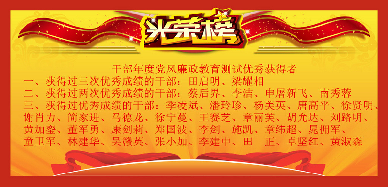 学院干部年度党风廉政教育测试优秀获奖者名单